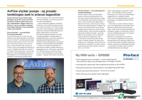 Han er særlig opptatt av helheten i anleggene – der samspillet mellom pumper, automasjon, rør, ventiler og arbeidsmiljø er avgjørende for et vellykket resultat. Lasse Torvund, avdelingsleder for prosjektavdelingen, er tydelig på verdien Morten bringer inn: – Morten har en svært verdifull kombinasjon av prosjekterfaring, automasjonskompetanse og driftserfaring fra kommunal sektor. Dette styrker prosjektavdelingen vår ytterligere og gjør oss enda bedre rustet til å levere helhetlige løsninger som fungerer godt over tid, sier Torvund. Med disse to ansettelsene fortsetter Ax- Flow å styrke sitt fagmiljø innen pumper, prosjektering og VA-løsninger. Både Sivertsen og Ulriksen deler selskapets søkelys på kvalitet, samarbeid og langsiktige løsninger – og vil bidra til å skape verdi for kunder, samarbeidspartnere og kollegaer.