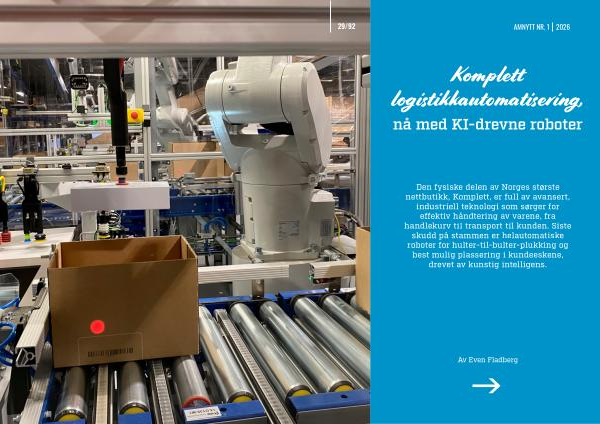 Den fysiske delen av Norges største nettbutikk, Komplett, er full av avansert, industriell teknologi som sørger for effektiv håndtering av varene, fra handlekurv til transport til kunden. Siste skudd på stammen er helautomatiske roboter for hulter-til-bulter-plukking og best mulig plassering i kundeeskene, drevet av kunstig intelligens.