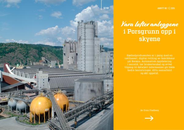 Gjødselprodusenten er i gang med en nettbasert, digital tvilling av fabrikkene på Herøya. Automatisk oppdatering i sanntid, lav brukerterskel og enkel tilgang til detaljert informasjon gir både bedre beslutninger, ditto samarbeid og økt oppetid.