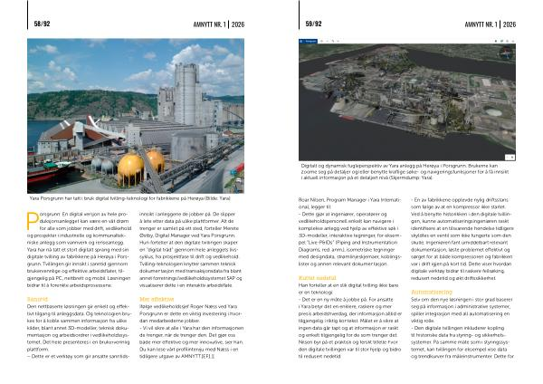 Kuttet nedetid Han forteller at en slik digital tvilling ikke bare er en teknologi:- Det er en ny måte å jobbe på. For ansatte i Yara betyr det en enklere, raskere og mer presis arbeidshverdag, der informasjon alltid er tilgjengelig i riktig kontekst. Målet er å sikre at ingen data går tapt og at informasjon er raskt og enkelt tilgjengelig for de som trenger det. Nilsen byr på et praktisk og ferskt tilfelle hvor den digitale tvillingen var til stor hjelp og bidro til redusert nedetid: