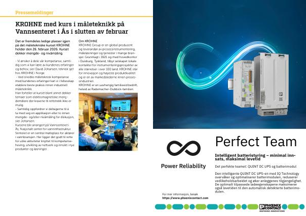 - Vi ønsker å dele vår kompetanse, samtidig som vi kan lære av kundenes erfaringer og behov, sier David Johansen, teknisk sjef hos KROHNE i Norge.- Ved å koble måleteknisk kompetanse med kundenes erfaringer kan vi i fellesskap etablere beste praksis innen industriell måleteknikk. Han forteller at kurset blant annet dekker temaer som elektromagnetiske mengdemålere der kravene til rettstrekk ikke er mulig.- Samtidig oppfordrer vi deltagerne til å ta med seg en applikasjon eller to innen mengde- og / eller nivåmåling for diskusjon, sier Johansen. Kursene blir arrangert på Vannsenteret i Ås, Nasjonalt senter for vanninfrastruktur. Senteret er en sentral møteplass for aktører i vannbransjen. Her ligger det godt til rette for ulike aktiviteter knyttet til kompetanseheving, utvikling av nettverk og innsikt i nye produkter og løsninger.