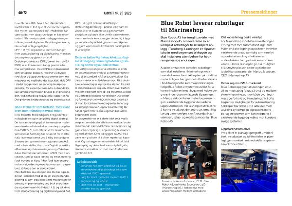 Blue Robot AS har inngått avtale med Marineshop AS om leveranse av et kompakt robotlager til selskapets anlegg i Tønsberg. Løsningen er tilpasset lokaler med begrenset takhøyde og skal installeres uten behov for bygningsmessige endringer.