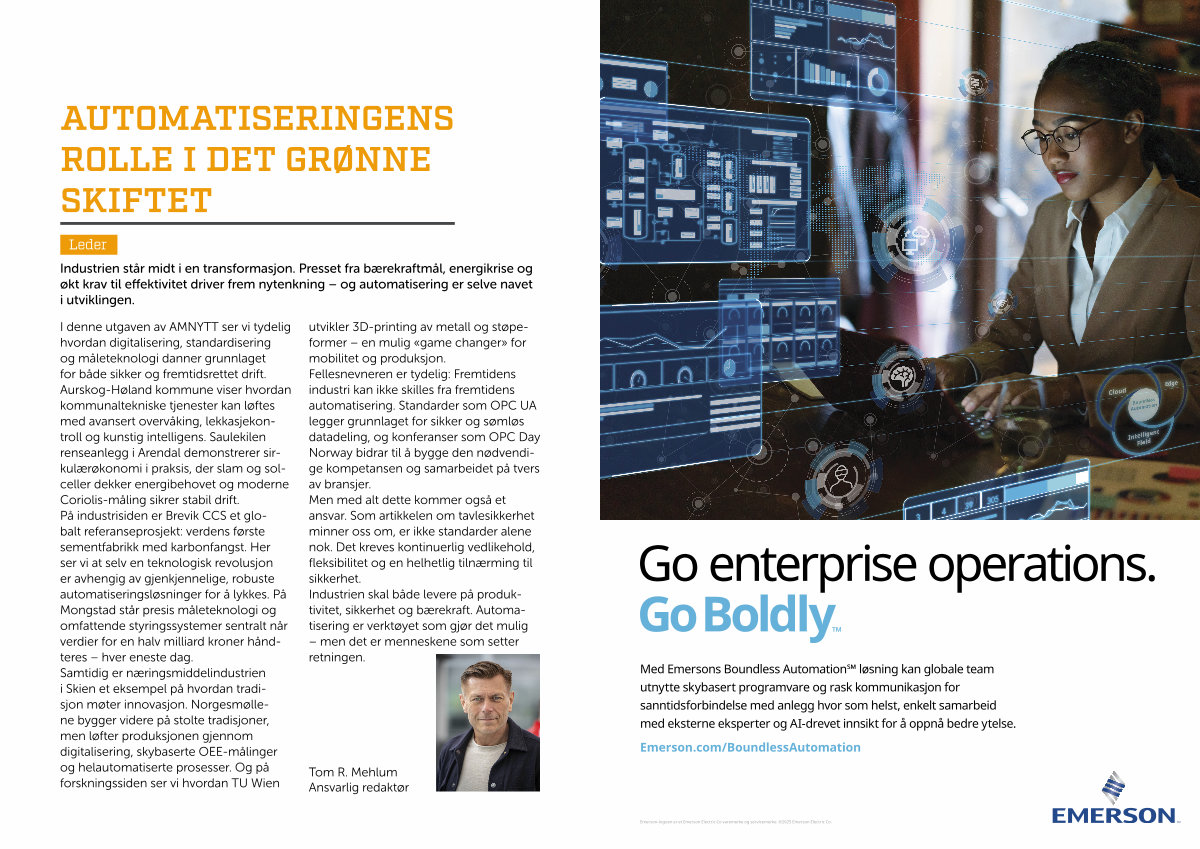 Med Emersons Boundless Automation℠ løsning kan globale team utnytte skybasert programvare og rask kommunikasjon for sanntidsforbindelse med anlegg hvor som helst, enkelt samarbeid med eksterne eksperter og AI-drevet innsikt for å oppnå bedre ytelse.