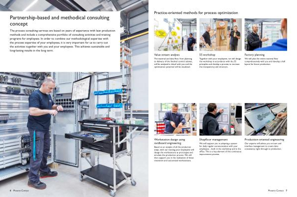 The process consulting services are based on years of experience with lean production methods and include a comprehensive portfolio of consulting activities and training programs for employees . In order to combine our methodological expertise with the process expertise of your employees , it is very important for us to carry out the activities together with you and your employees . This achieves sustainable and long-lasting results in the long term .
