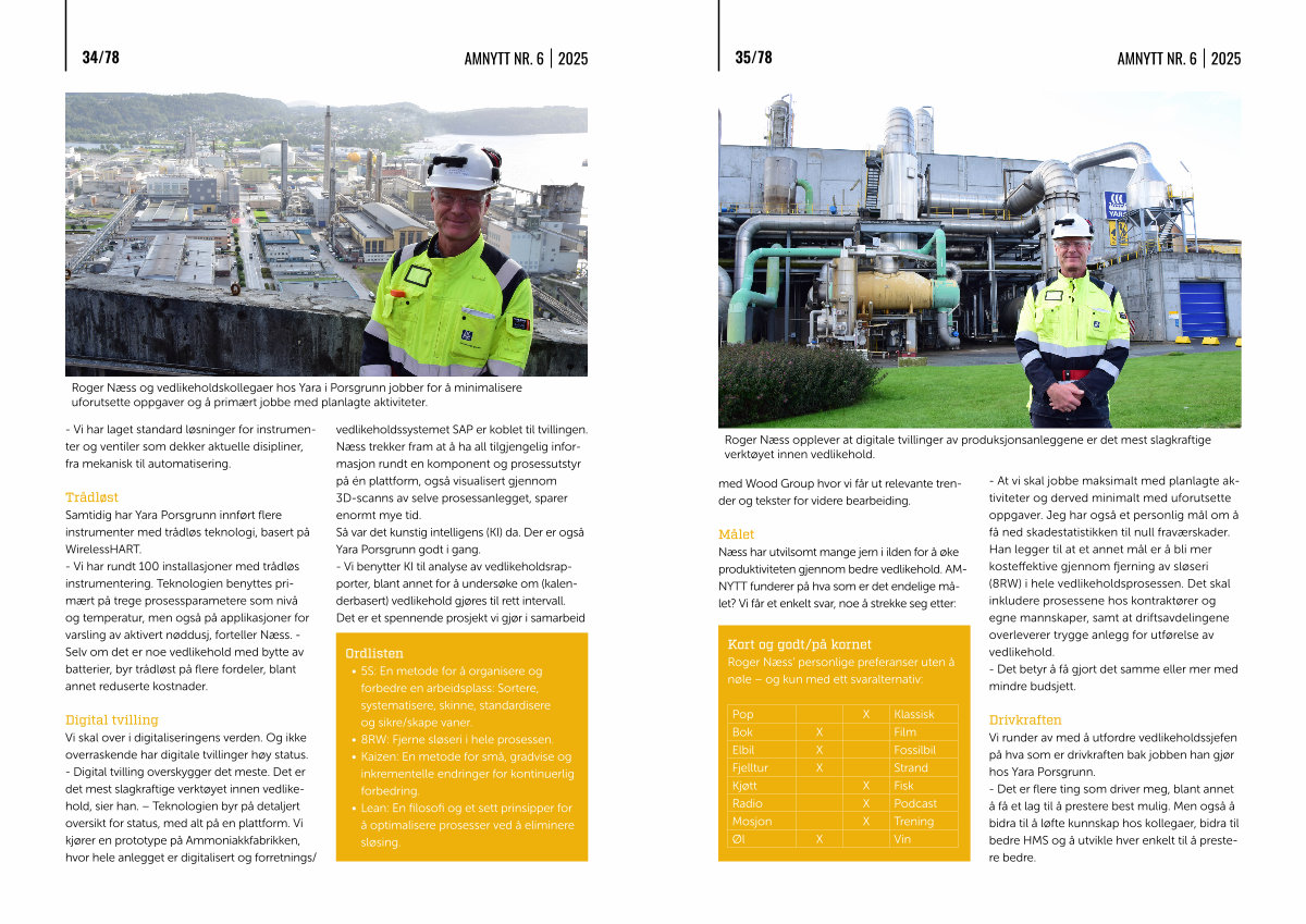 Roger Næss og vedlikeholdskollegaer hos Yara i Porsgrunn jobber for å minimalisere uforutsette oppgaver og å primært jobbe med planlagte aktiviteter.