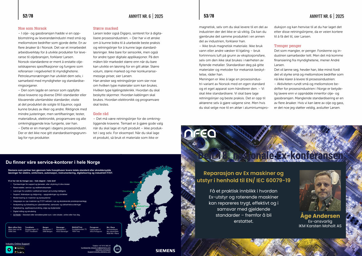 Trenger penger Det som mangler, er penger. Forskerne og industrien samarbeider tett. Men det må komme finansiering fra myndighetene, mener André Larsen. Det vil lønne seg, hevder han, ikke minst fordi det vil styrke små og mellomstore bedrifter som nå ikke klarer å levere til prosessindustrien: – Aktiviteten rundt små og mellomstore bedrifter for prosessindustrien i Norge er betydelig lavere enn vi oppnådde innenfor olje- og gassbransjen. Manglende standardisering er en av flere årsaker. Hvis vi kan lære av olje og gass, er det noe jeg støtter veldig, avslutter Larsen.