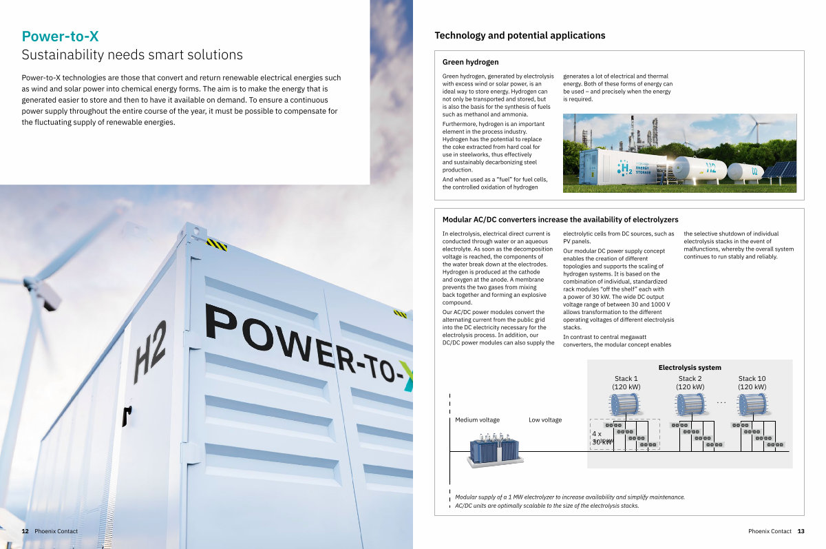 Modular supply of a 1 MW electrolyzer to increase availability and simplify maintenance. AC / DC units are optimally scalable to the size of the electrolysis stacks.