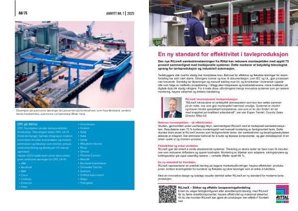 Den nye RiLineX samleskinneløsningen fra Rittal kan redusere montasjetiden med opptil 75 prosent sammenlignet med tradisjonelle systemer. Dette markerer et betydelig teknologisk sprang for tavleproduksjon og industriell automasjon.