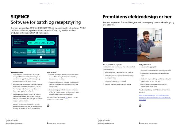 Siemens lanserer WinCC Unified SIQENCE V20, en ny og innovativ utvidelse av WinCC Unified-plattformen, spesielt utviklet for oppskriftstyrt og batchkontrollert produksjon i henhold til ISA-88-standarden.