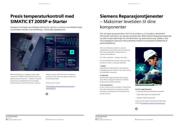 Selv de beste komponentene når til slutt slutten av sin livssyklus. Resultatet? Uforutsette driftsstans og redusert produktivitet. Med Siemens Reparasjonstjenester og våre livssyklusløsninger for refurbishment og remanufacturing, dekker vi alle serviceoppgaver gjennom hele produktets levetid fra funksjonell vedlikehold til ytelsesforbedring.